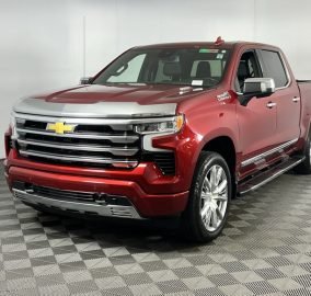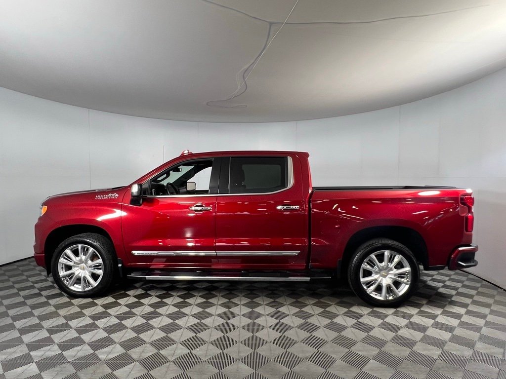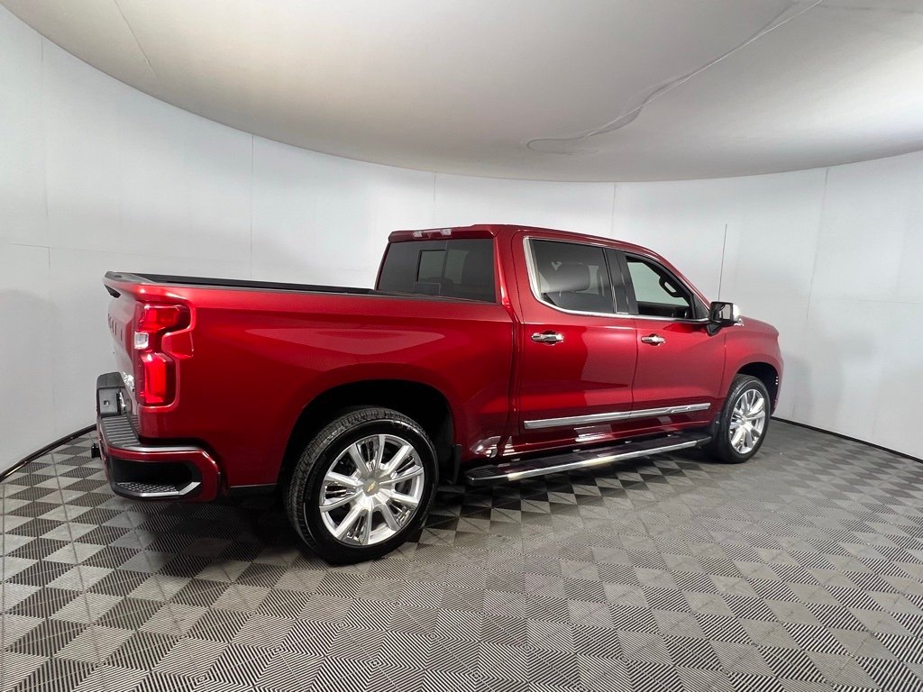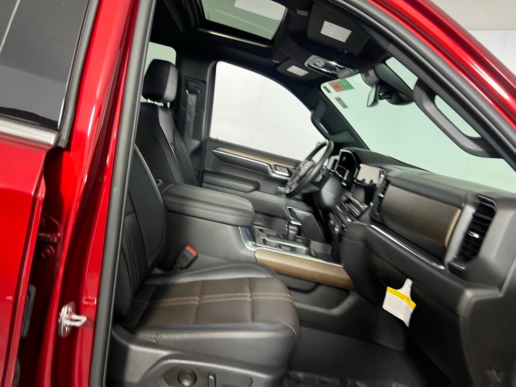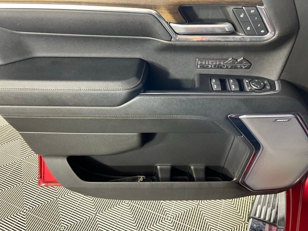 Experience luxury, power, and cutting-edge technology with this Radiant Red Tintcoat 2024 Chevrolet Silverado 1500 High Country 4WD, equipped with a robust 3.0L I6 engine and smooth 10-speed automatic transmission. This premium truck features the High Country Premium Package, High Capacity Suspension, and bold 22" painted aluminum wheels for enhanced performance and style. Inside, enjoy top-tier comfort with leather-appointed front bucket seats, heated and ventilated front seats, dual-zone automatic A/C, memory seats, and a power sunroof. Advanced tech includes a massive 13.4" touchscreen, Chevrolet Infotainment 3 Premium System, Apple CarPlay, Android Auto, 12.3" digital driver display, and a Bose 7-speaker premium audio system. Stay safe with Chevy Safety Assist, Forward Collision Alert, Lane Keep Assist, Lane Departure Warning, Trailer Blind Spot Alert, and Front and Rear Park Assist. Additional highlights include a Chevytec spray-on bedliner, chrome assist steps, adaptive cruise control, power rear sliding window, and all-weather floor liners, making this Silverado 1500 High Country the ultimate blend of strength, luxury, and smart technology.